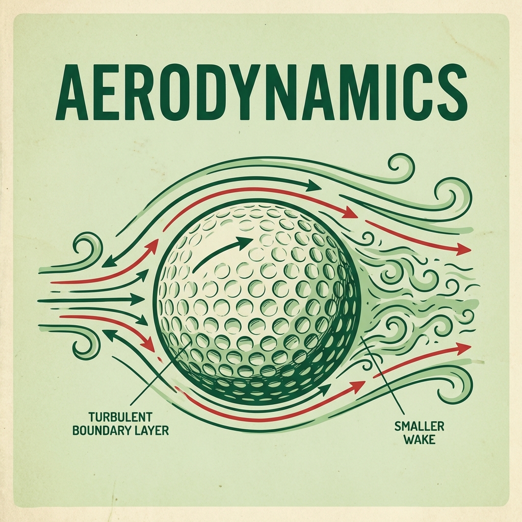 Dimples force the boundary layer to become turbulent earlier, but this turbulence actually helps the air cling to the ball's surface longer before separating. The result is a much smaller wake and significantly less drag. The trade-off involves slightly more friction against the ball's skin, but the reduction in pressure drag more than compensates. At typical golf ball speeds around 70 miles per hour, dimples can reduce drag by nearly 50 percent.