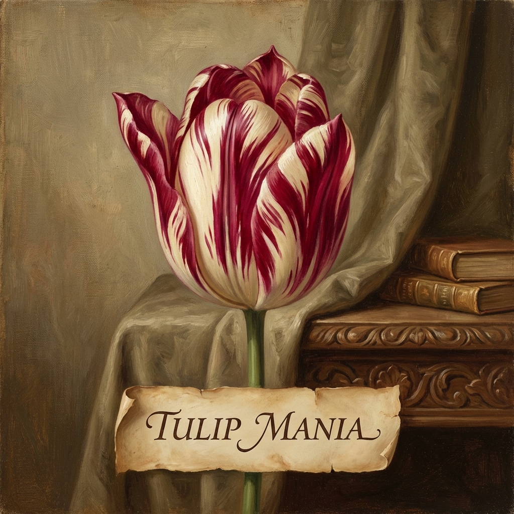 Tulips had arrived in Europe from the Ottoman Empire in the mid-1500s and quickly became fashionable among the Dutch elite. Some bulbs developed striking striped patterns caused by a mosaic virus that infected the plant, creating unpredictable and irreproducible color variations. These "broken" tulips were especially prized, and breeders gave them poetic names like Admirael van der Eijck and Semper Augustus.