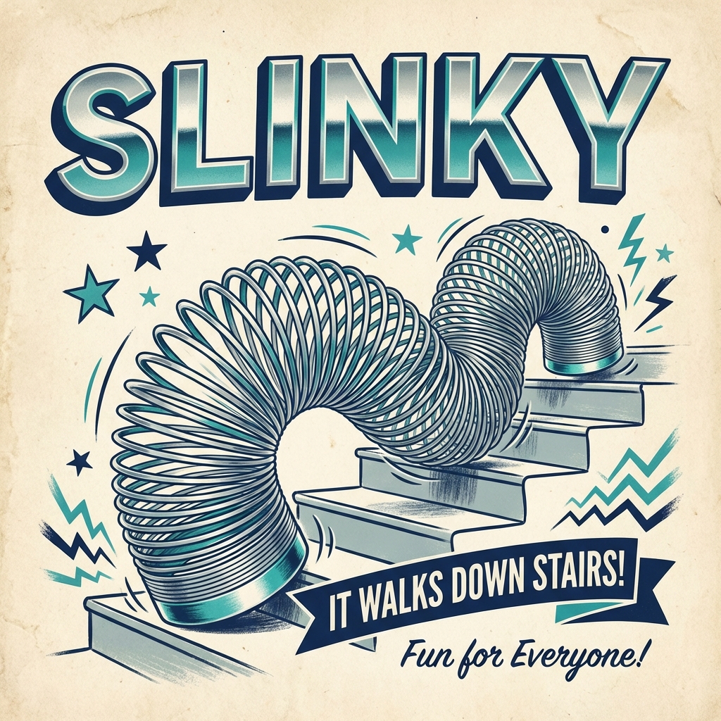 His wife Betty recognized what he didn't: this wasn't a failure. This was a toy. She spent hours with a dictionary looking for the right name and landed on "slinky," meaning sleek and sinuous in movement. They took out a $500 loan, founded James Industries, and Richard worked out the specifications—80 feet of wire coiled into a two-inch spiral.