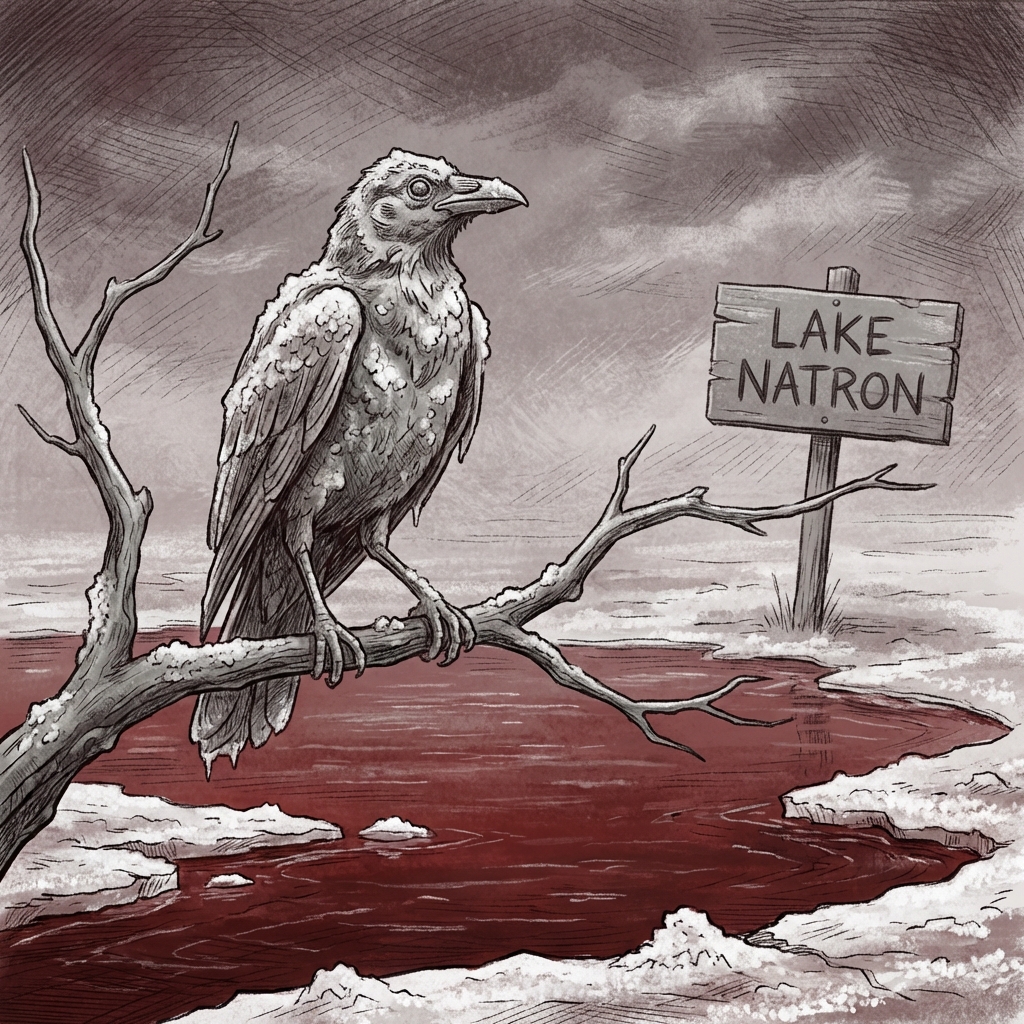 The lake gets its name from natron, a naturally occurring mix of sodium carbonate and baking soda that was once used by ancient Egyptians in mummification. When animals die in or near the water, the sodium and salt calcify their bodies, preserving them in eerie detail—feathers intact, beaks slightly open, frozen in positions that look almost posed.
