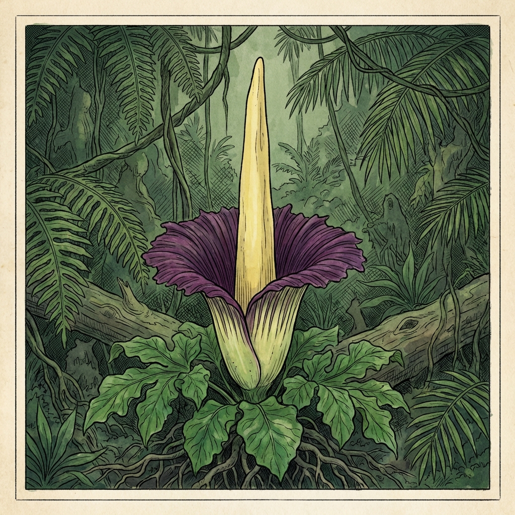 The titan arum blooms so rarely and smells so terrible that botanic gardens issue public alerts when one is about to open. Visitors line up, sometimes for hours, to experience a scent most people describe as rotting flesh. The plant earns its common name—the corpse flower—honestly.