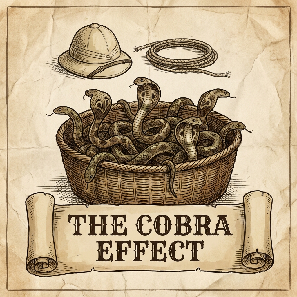 During British colonial rule in India, the government in Delhi grew concerned about the number of venomous cobras in the city. The administration offered a bounty: bring in a dead cobra and receive a cash payment. The logic was straightforward—fewer cobras meant fewer snakebites, and a financial incentive would mobilize the population to hunt them.